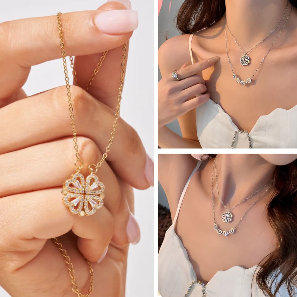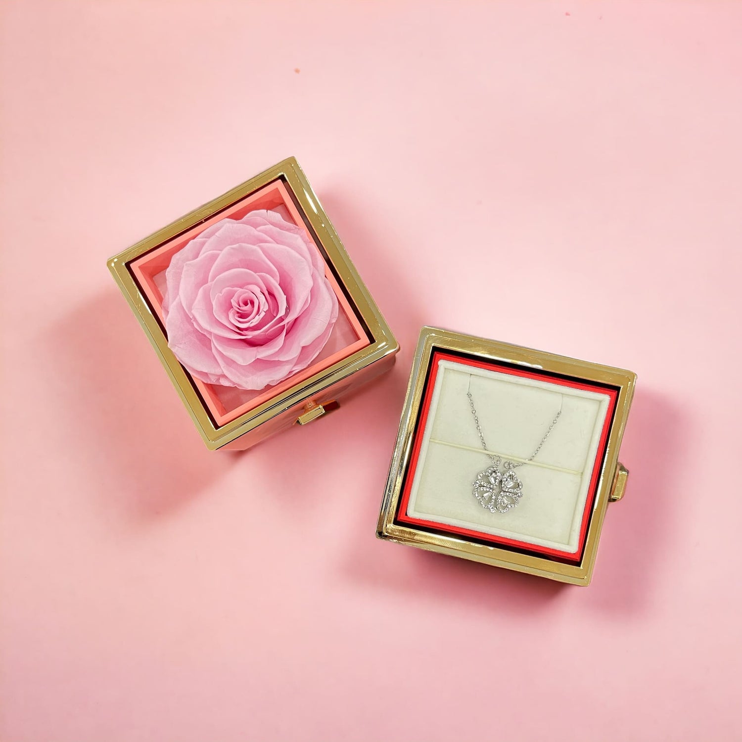 Caja de Rosa Eterna | Rosa Real y Collar Trébol de Corazónes