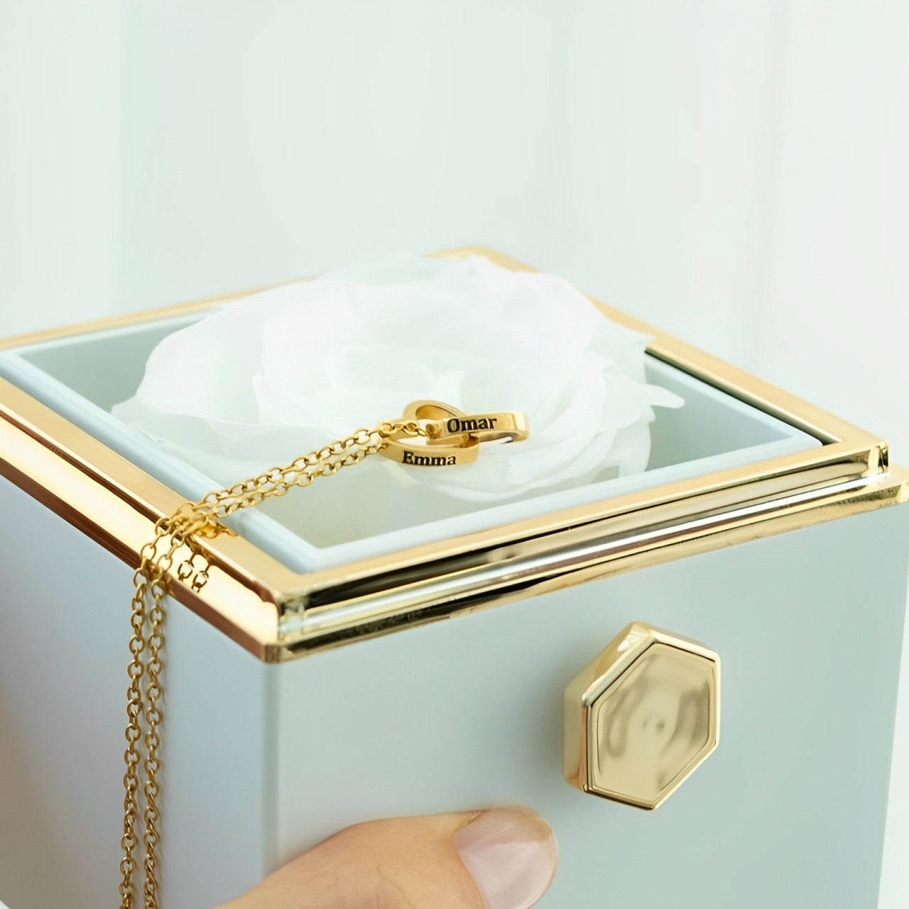 Caja de Rosa Eterna | Rosa Real y Collar Personalizado en Oro 18k